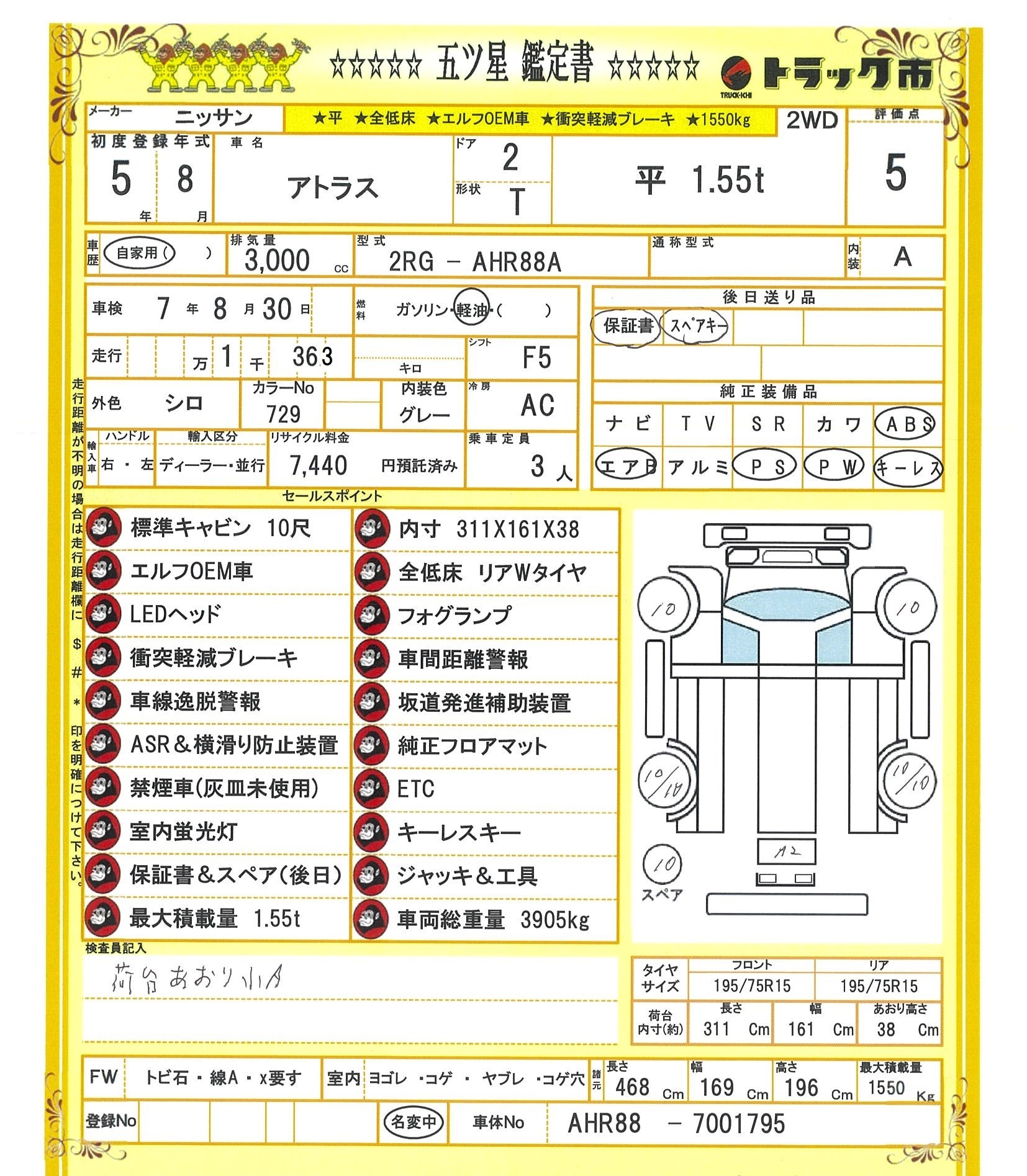 日産 アトラス 平ボディ 全低床 衝突軽減ブレーキ ETC 禁煙車 1.55t 5MT