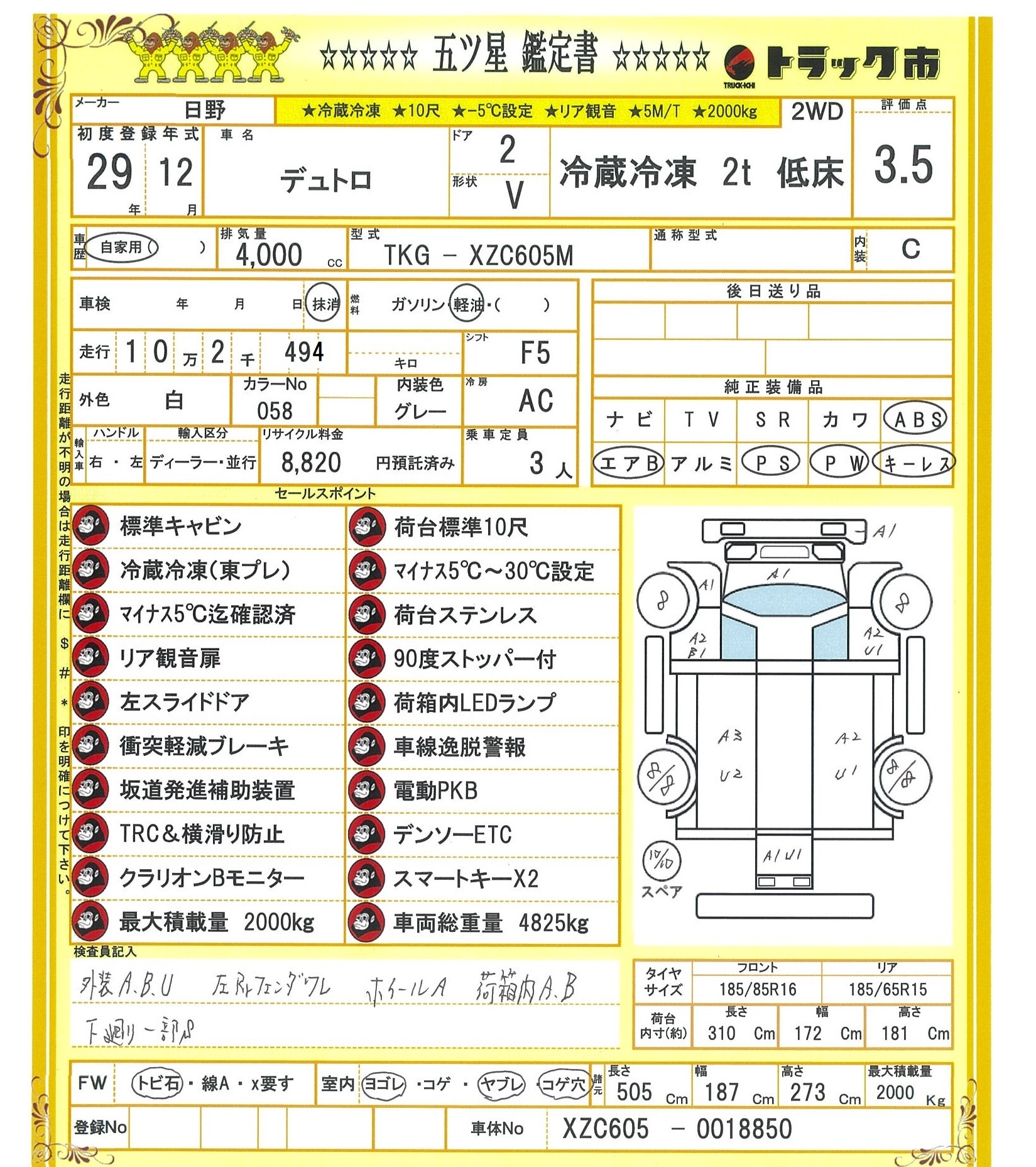 日野 デュトロ 冷蔵冷凍 -5℃ 10尺 低床 リア観音扉 Bカメラ ETC 2t 5MT