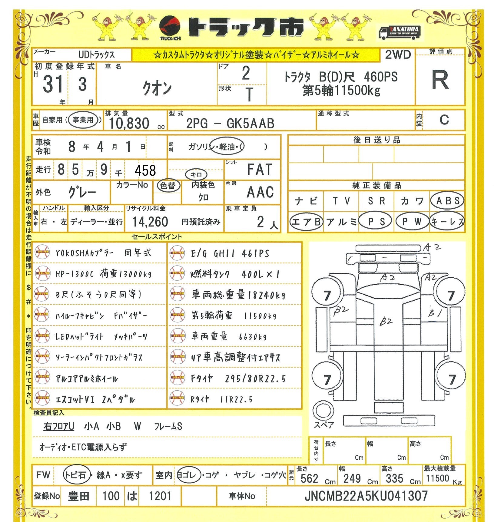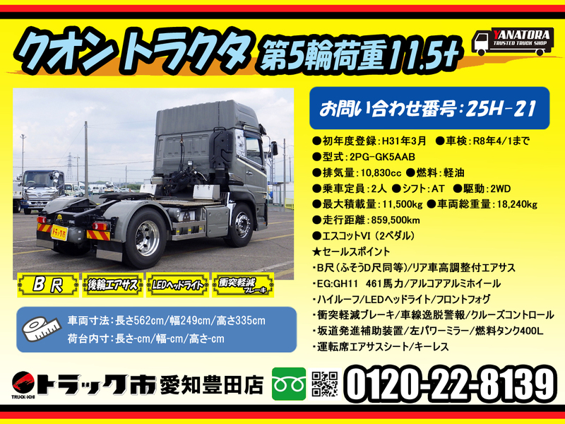 【Y250H0021】UDトラックス クオン UDトラックス クオン トラクタ B(D)尺 カスタムトラクタ 第5輪11500kg