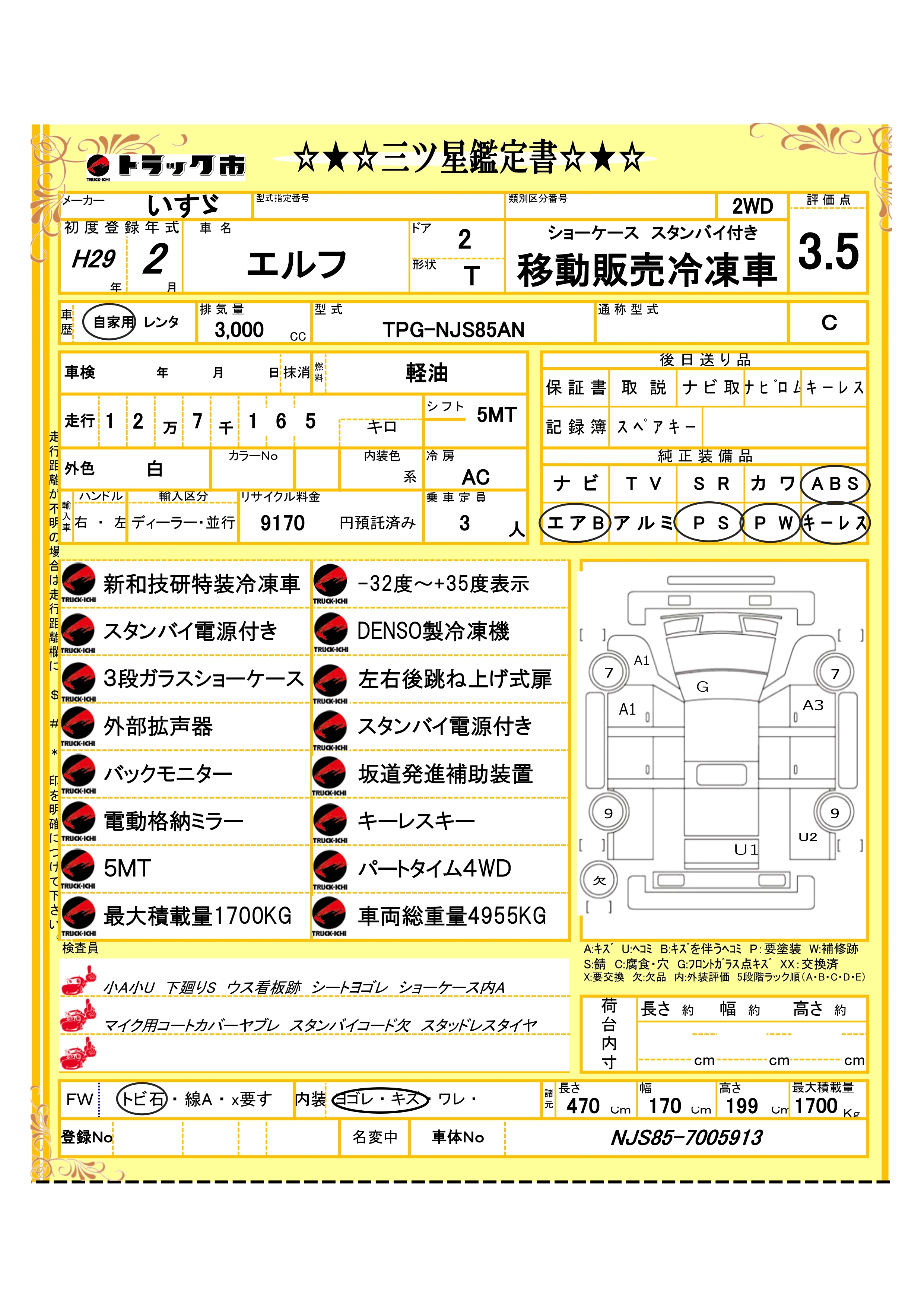【Y250H0025】いすゞ エルフ 移動コンビニ冷凍車4WD 3段ガラスショーケース スタンバイ電源 バックモニター キーレス 5MT