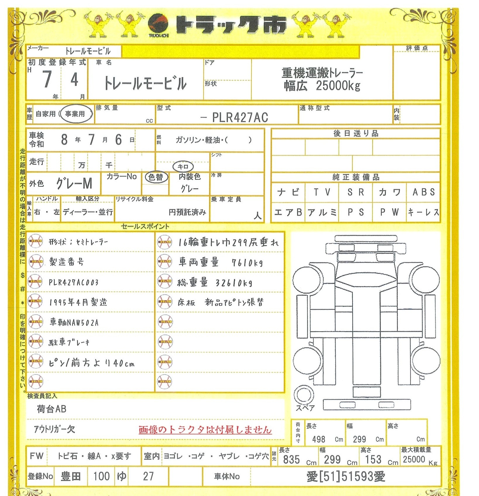 ☆重機運搬トレーラー/形状:セミトレーラー