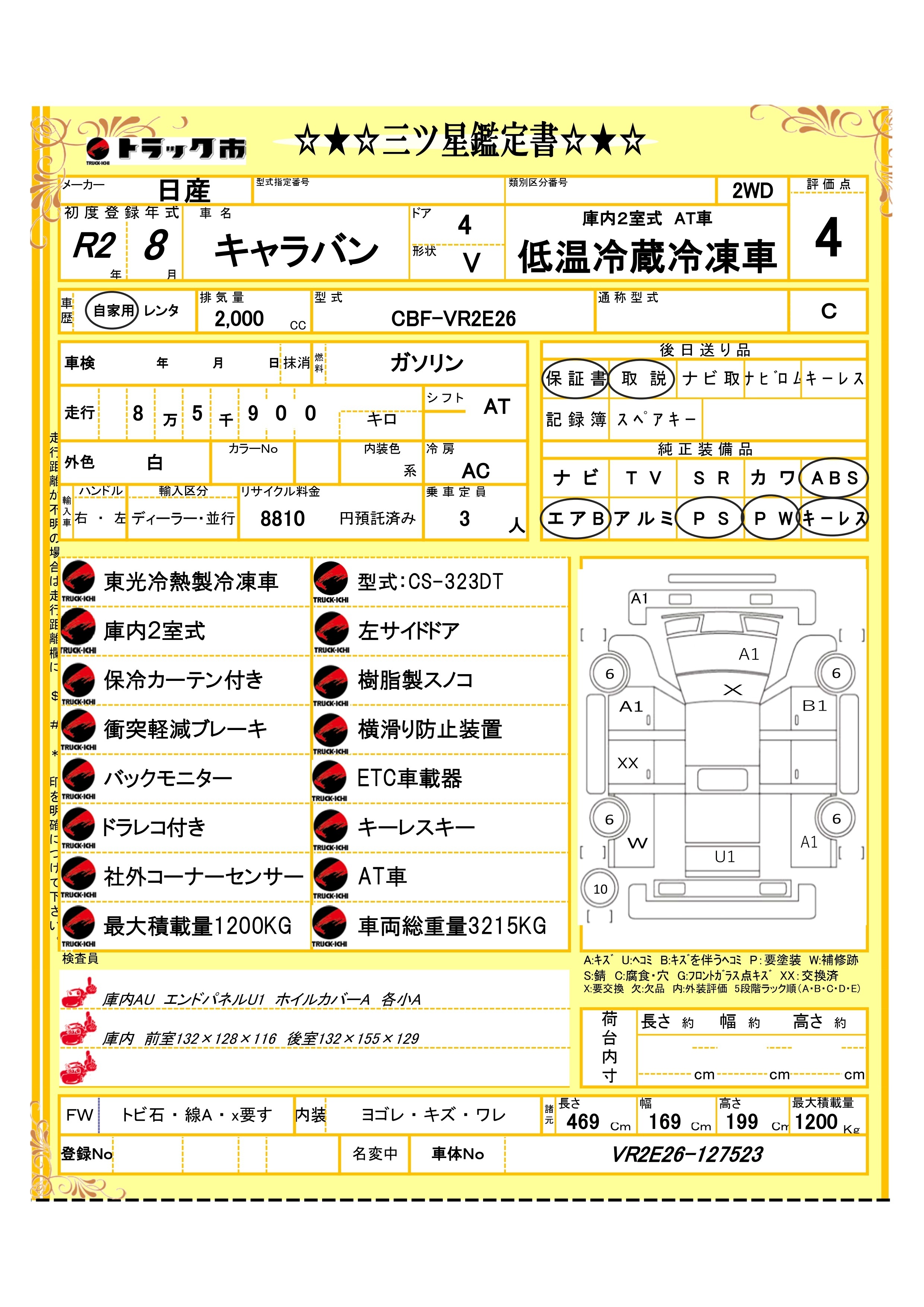 【Y250J0011】日産 キャラバン -20度設定低温冷凍車 2室式 衝突軽減ブレーキ バックモニター ETC キーレス AT車