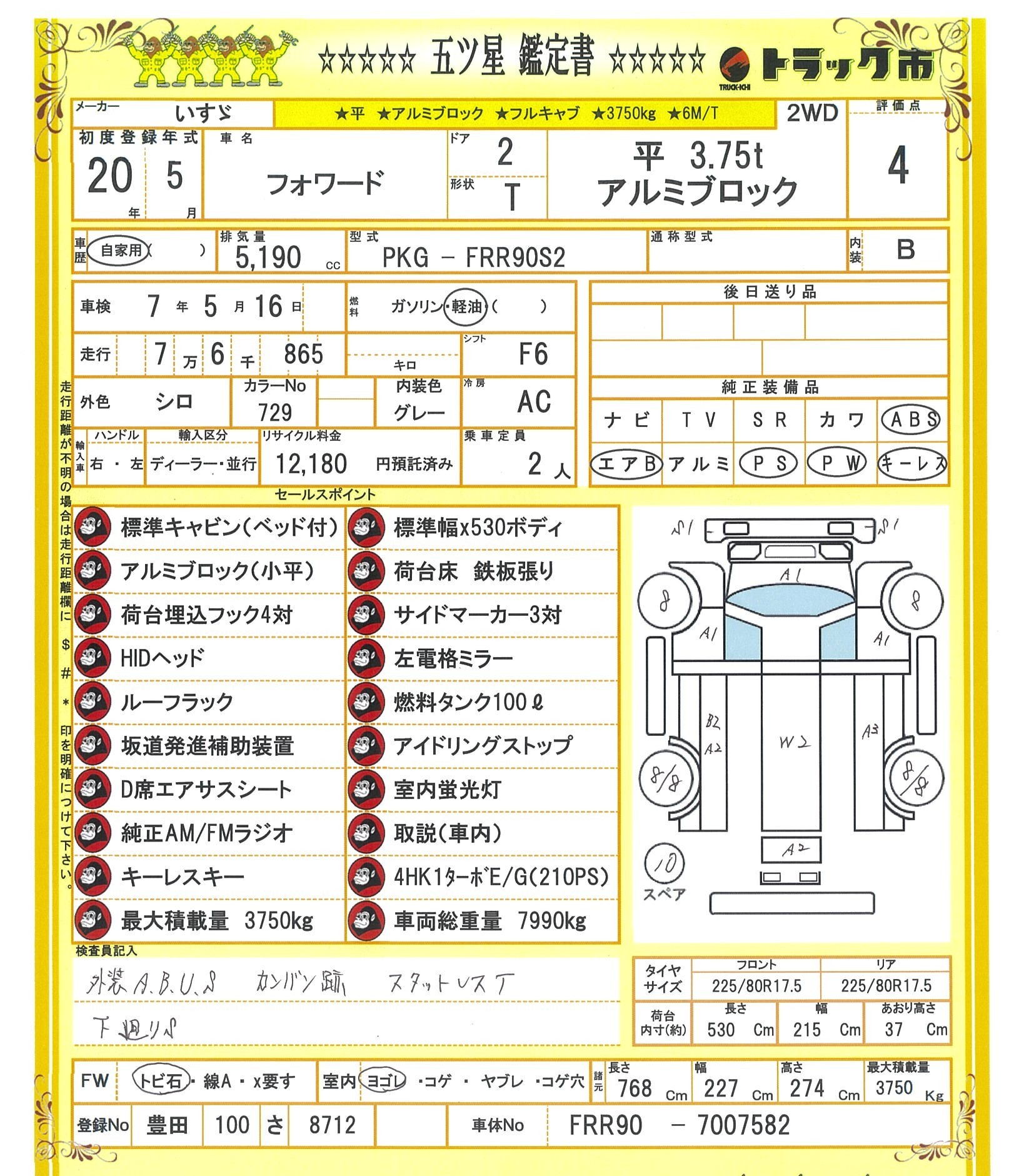 ☆3750kg/3.75t/3.75トン